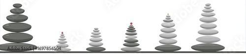 Stacked stones in various shades of gray, creating a series of balanced towers