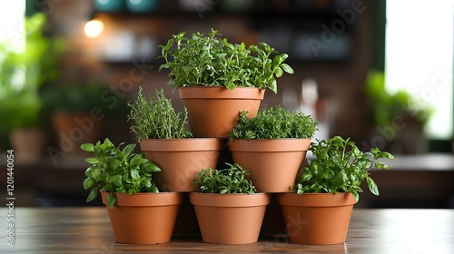 Stacked Terracotta Gardening Pots with Herbs for Small Indoor Spaces