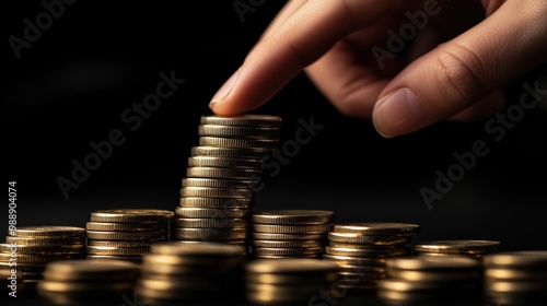 Stacking Gold Coins on Dark Background