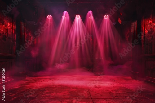 Stage with red lights and smoke