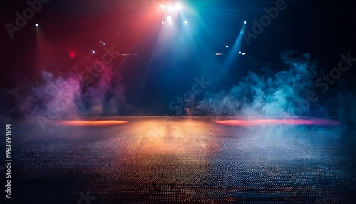Stage with Smoke, Lights, and a Gridded Floor