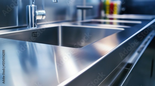 Stainless steel commercial sinks, modern kitchen, restaurant or food prep area