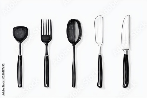 Stainless Steel Cooking Tools and Kitchen Gadgets Arrangement Flat Lay of Essential Culinary Equipment for Preparing and Serving Food in Modern Minimalist Style