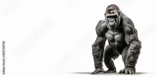 Standing Gorilla isolated on white background, sad mood, Generative AI