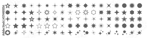 Star icons vector set. Different black sparkles. Twinkling stars, shining burst. Christmas vector symbols isolated on white background