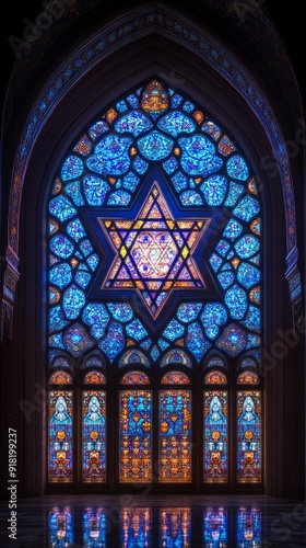Star of David Synagogue Stained Glass Judaism Religion Spiritual Symbol - Generative AI