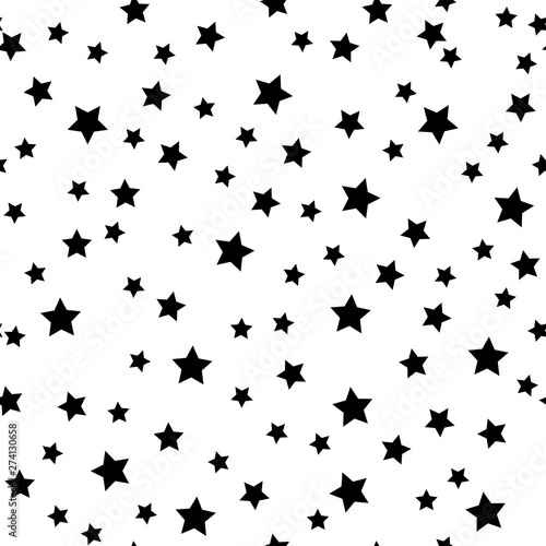 Star seamless pattern. White and black retro background. Chaotic elements. Abstract geometric shape texture. Effect of sky. Design template for wallpaper,wrapping, textile. Vector Illustration.