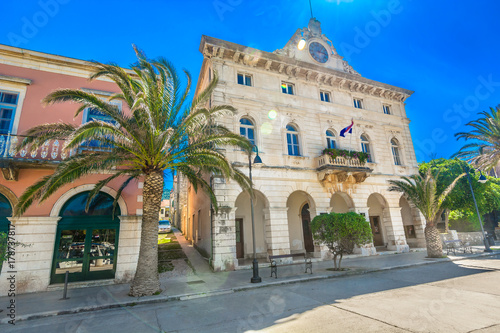 Starigrad old architecture scenery. / Scenic view at marble stone architecture in Dalmatia region, ancient town Starigrad on Island Hvar, Croatia.