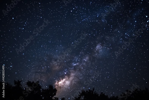 Starlit sky over a quiet landscape reveals the beauty of the Milky Way galaxy