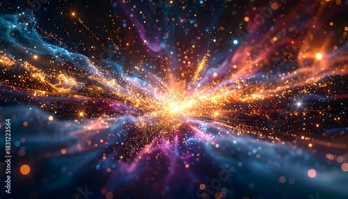 Starry Glitter Burst Background. Blurred Glitter Bokeh Confetti Lights Background