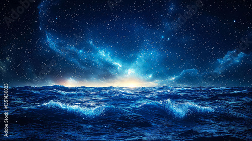 Starry Night Over a Deep Blue Ocean: A Celestial Seascape