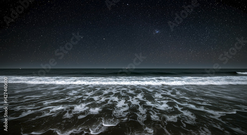 Starry Night Seascape Tranquil Ocean Waves Under a Blanket of Stars