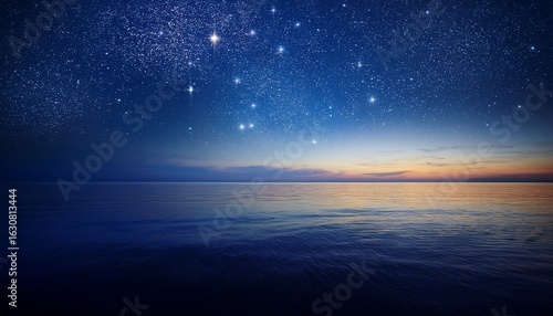 starry night sky above tranquil ocean shimmering reflections on water gentle horizon blending with celestial beauty
