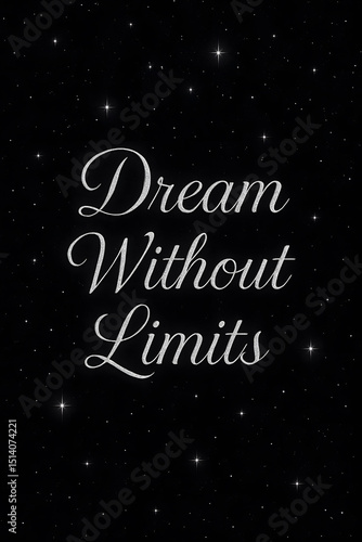 Starry Night Sky With “Dream Without Limits” in Soft Silver Glow Script