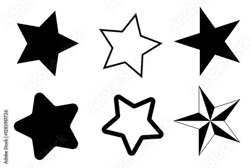 Stars icon collection. Different star shapes. Black stars icon set