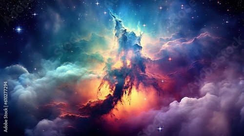 Stary night cosmos. Universe science astronomy. Colorful space galaxy cloud nebula. Generative AI for banner, poster, cover, brochure or presentation.