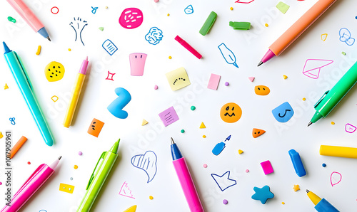 stationery in doodle 2D illustrator style, with cartoonish/symbolic elements and a white background.