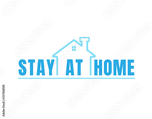 Stay at home text With a small house in the middle, COVID 19 or coronavirus protection campaign.