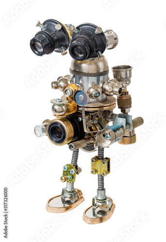 Steampunk robot. Cyberpunk style. Chrome and bronze parts.