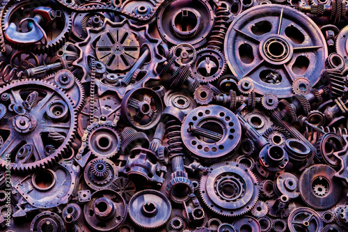 Steampunk texture, backgroung with mechanical parts, gear wheels