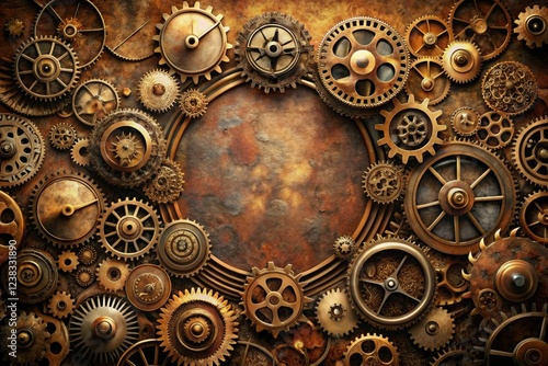 Steampunk-inspired Background with Gears and Clocks, machinery, clockwork, steampunk aesthetic, gears