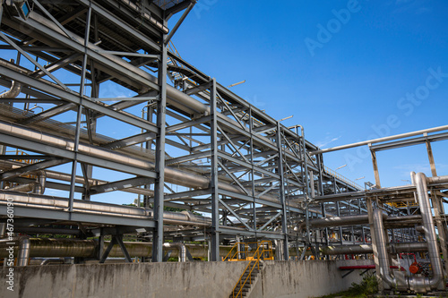 Steel long pipes and pipe elbow in station oil factory during refinery Petrochemistry industry