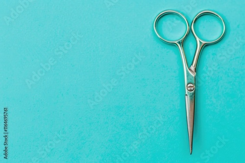 Steel scissors on vibrant turquoise background