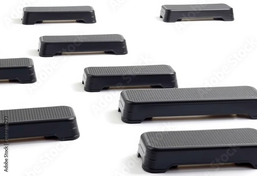 Step platforms arranged on white background, ideal for fitness or sports training, gear, sturdy