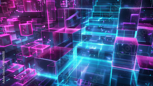 Steps and platforms: A background with 3D structures resembling steps and platforms that one can visually "step onto."