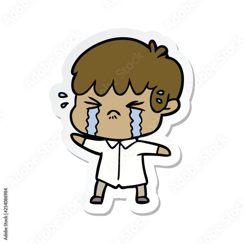 sticker of a cartoon boy crying