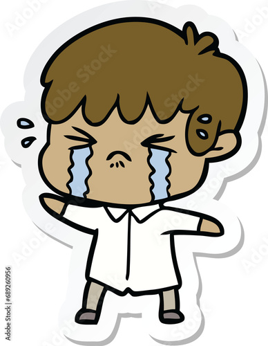 sticker of a cartoon boy crying