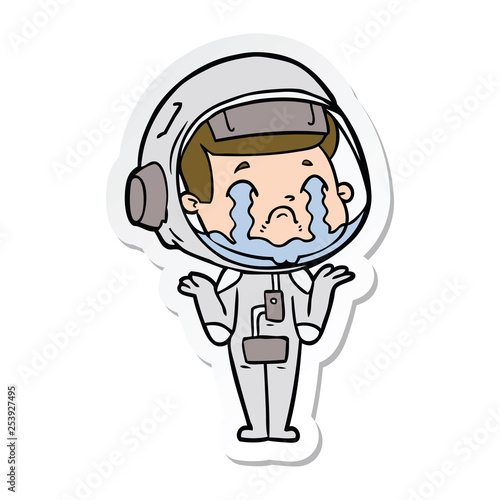 sticker of a cartoon crying astronaut