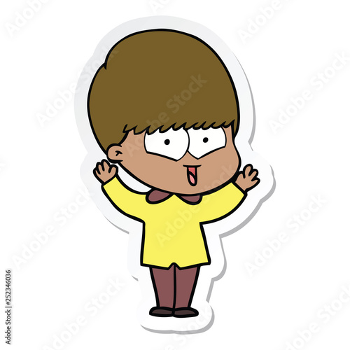 sticker of a cartoon happy boy