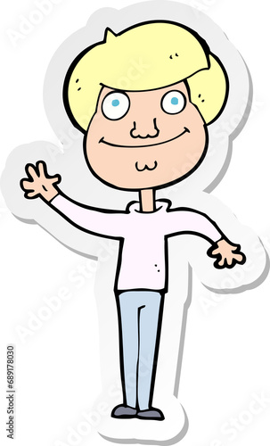 sticker of a cartoon happy man waving
