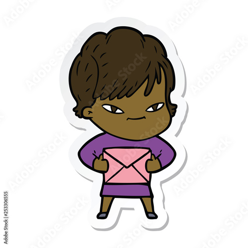 sticker of a cartoon happy woman