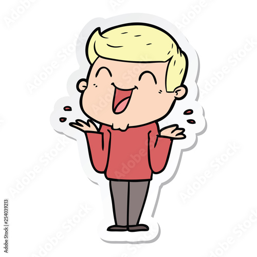 sticker of a cartoon man laughing