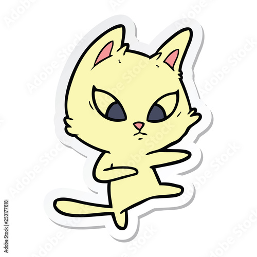 sticker of a confused cartoon cat
