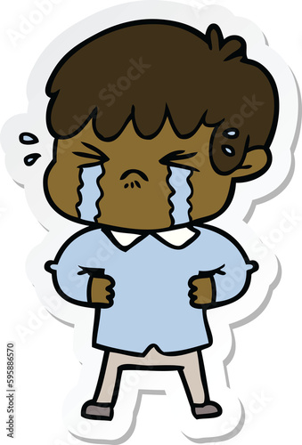 sticker of a crying boy cartoon