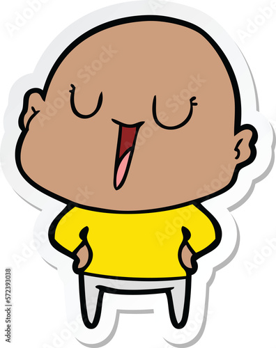 sticker of a happy cartoon bald man