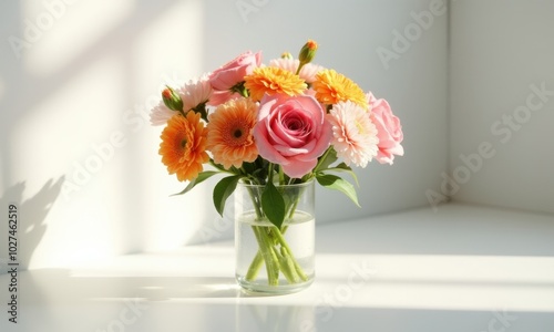 Still life with bright flowers against sunlight.