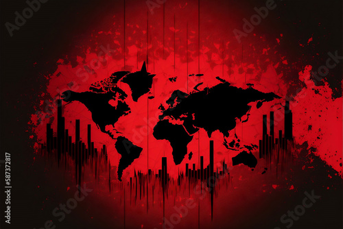 stock market chart in world map, isolated in red and black colors, Generative AI