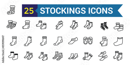 Stockings icons set outline vector. Vascular leg. Vein medical. Outline icon collection. Editable stroke.