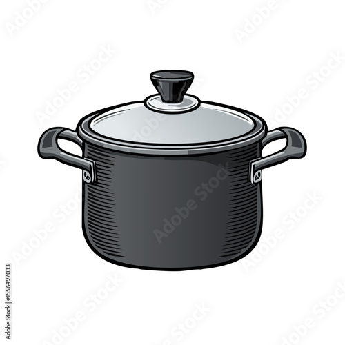 Stockpot Illustration with Lid, Cooking Pot Icon for Culinary Arts and Kitchenware Design