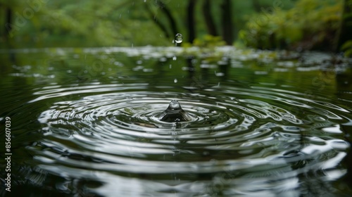 Stone splashing into serene pond creating mesmerizing water ripples and droplet