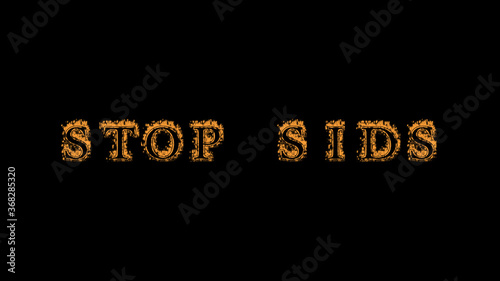 stop sids fire text effect black background. animated text effect with high visual impact. letter and text effect. Alpha Matte.