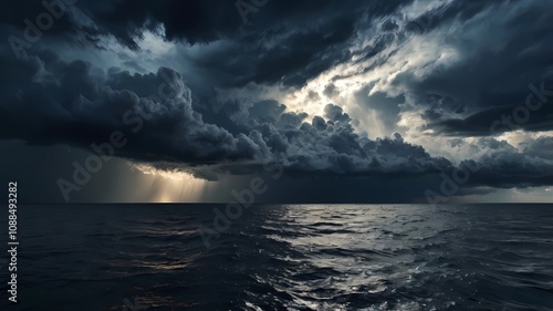storm clouds and rain with dramatic sky on the ocean. dark and dramatic stormy clouds over sea