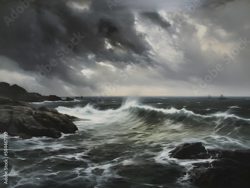 Storm in the ocean, oil paint. Generative AI