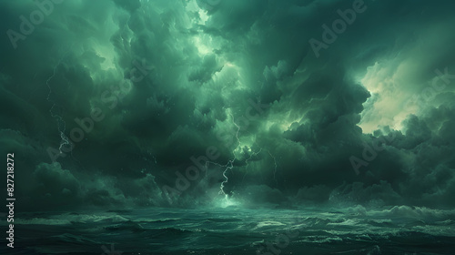 Storm with rain in the ocean