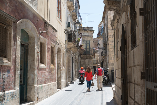 Strassenscene mit Touristen in Syrakus Sizilien