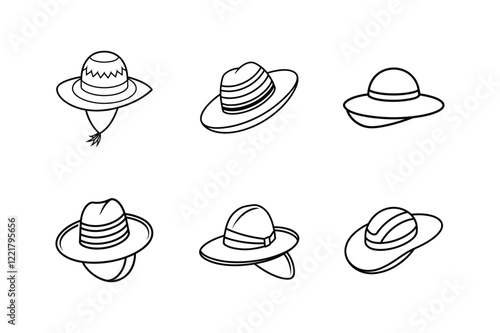straw hat line art vector illustration